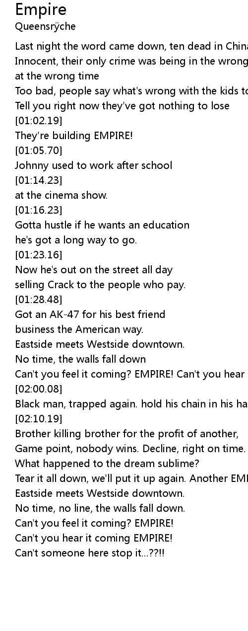 Can't you feel it coming? EMPIRE! Can't you hear it calling? |