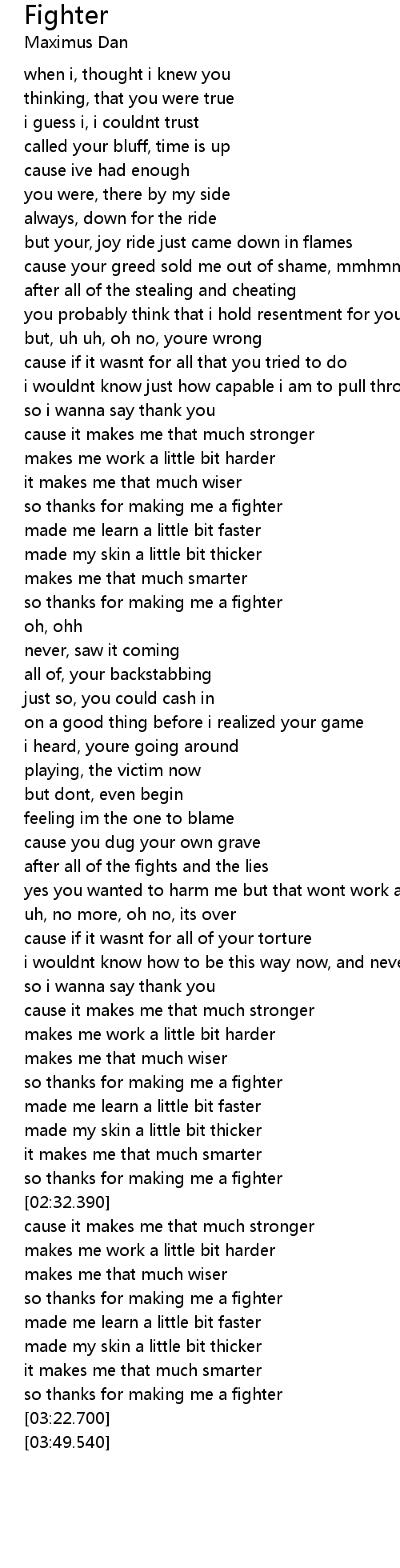 | [02:01.900] | cause if it wasnt for all of your torture |