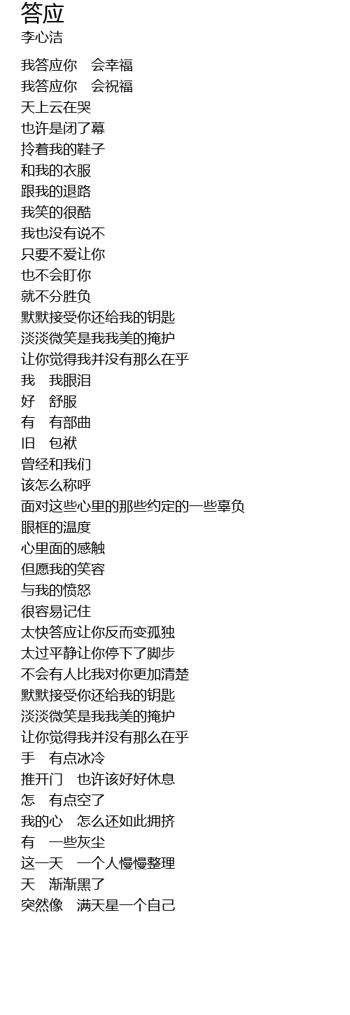 | [00:18.56] | 我答应你 会祝福 |