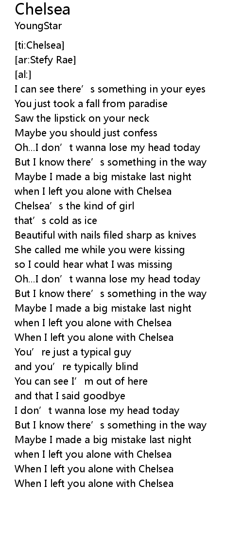 | [02:39.63] | When I left you alone with Chelsea |