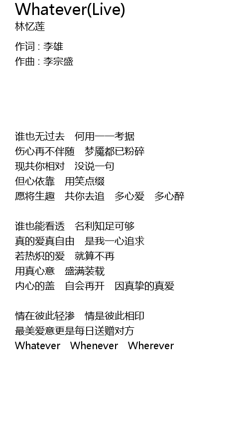 | 歌曲 | Whatever(Live) |