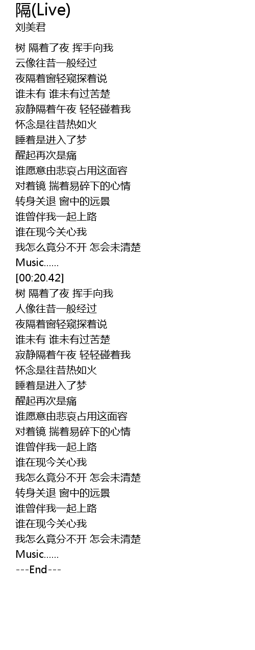 | [00:23.57] | 树 隔着了夜 挥手向我 |