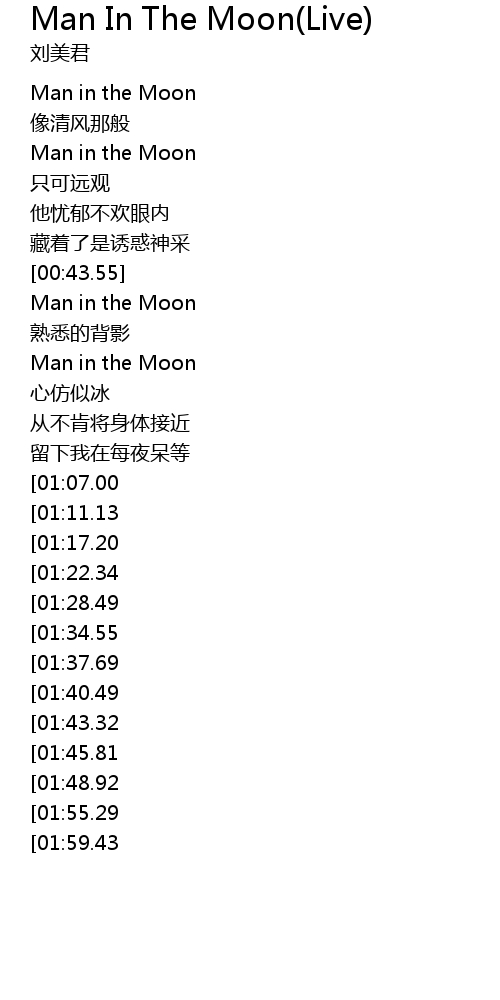 | [02:24.93][01:11.13] | zǒng cāi yǒu dào tā xīn zhòng shāng xīn gù shì |
