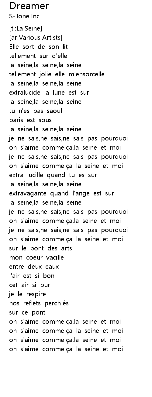 | [00:55.49] | on s' aime comme a la seine et moi |