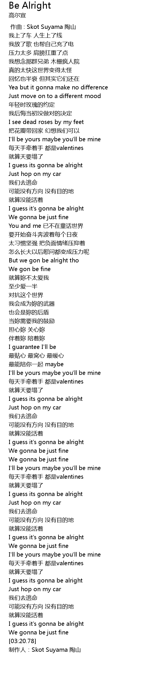 | [02:34.70] | I guess its gonna be alright |