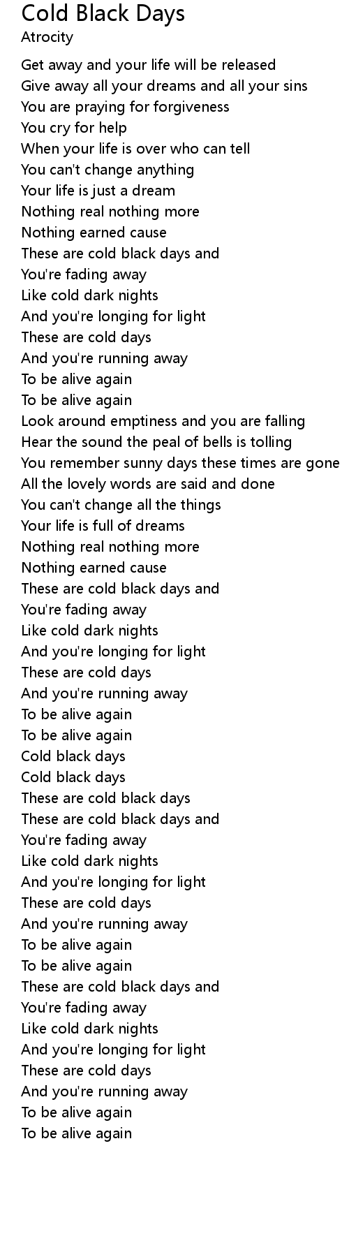 Cold Black Days 歌词
