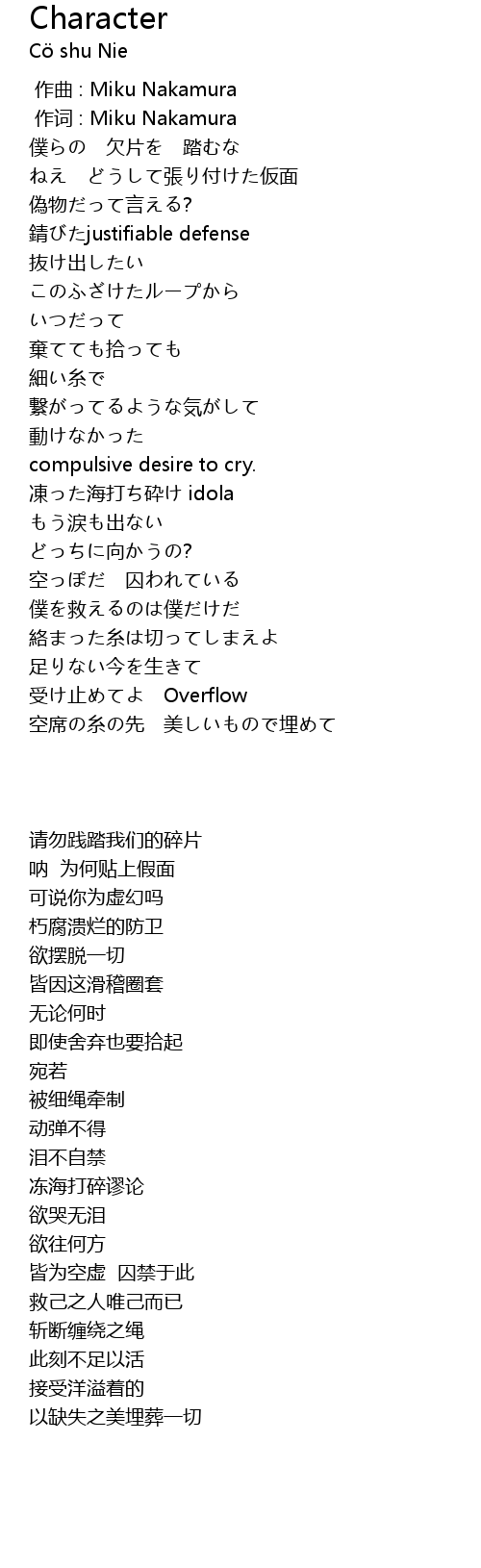 | [00:01.000] | zuò cí : Miku Nakamura |