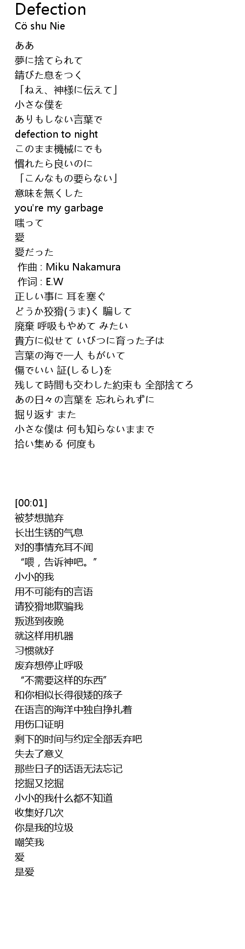 | [00:00.000] | zuò qǔ : Miku Nakamura |