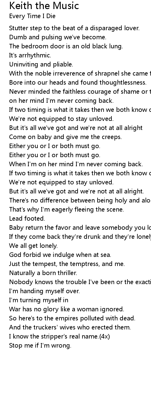 Never minded the faithless courage of shame or the bravery of oblivion, When I'm on her mind I'm never coming back. |