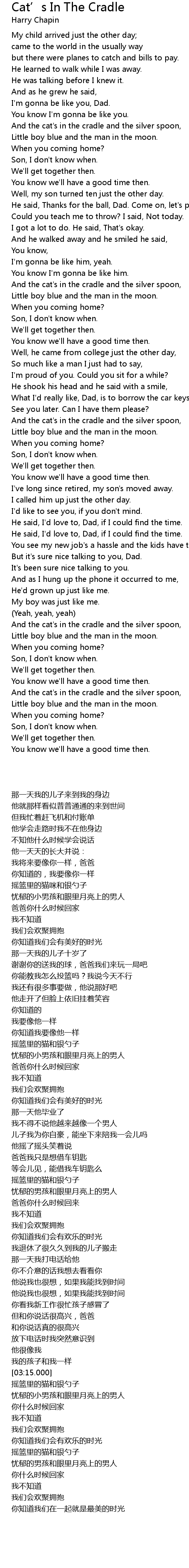 And the cat's in the cradle and the silver spoon, |