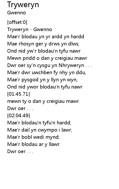 Dwr oer sy'n cysgu yn Nhryweryn . . . |