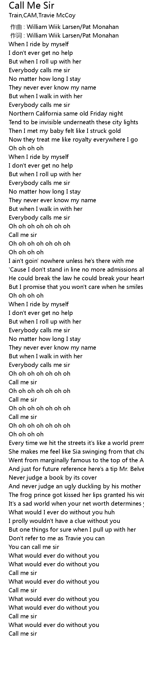 | [01:00.28] | Everybody calls me sir |