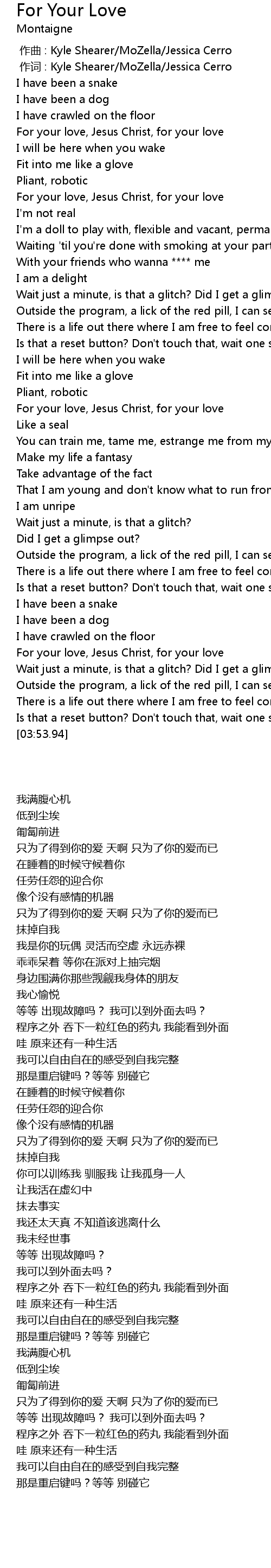 | [03:16.93] | 只为了得到你的爱 天啊 只为了你的爱而已 |
