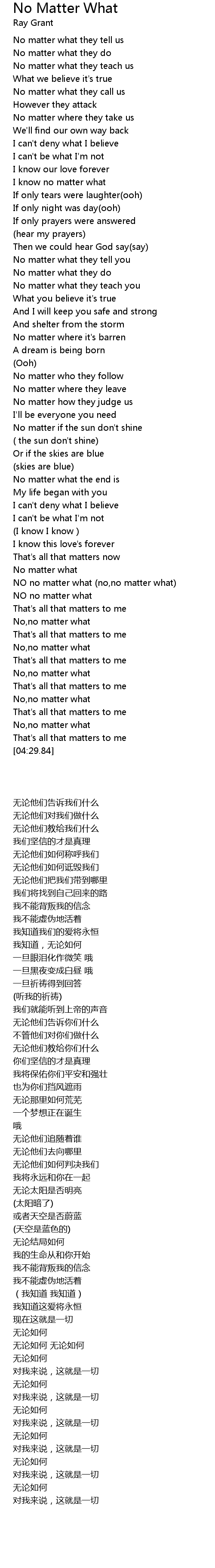 I know no matter what |