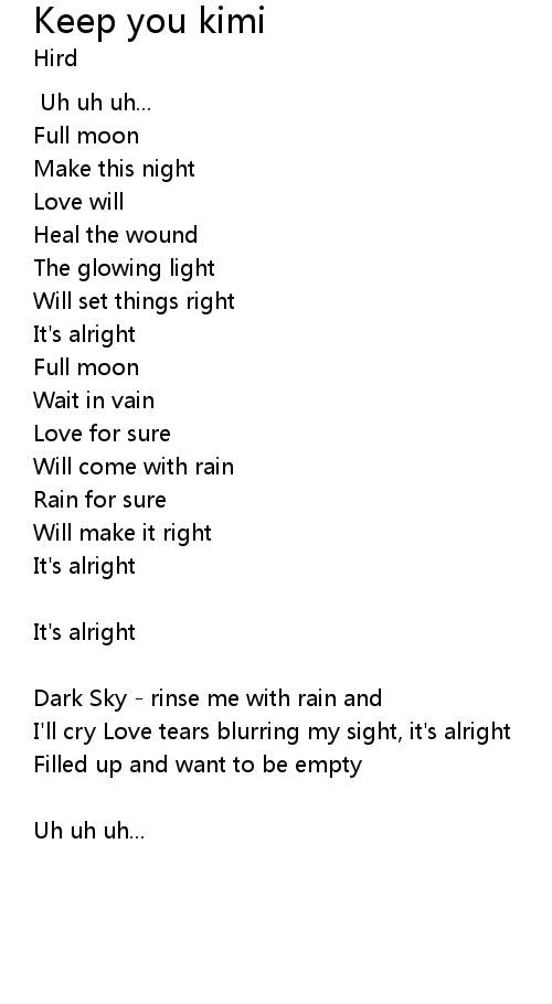 | I'll cry Love tears blurring my sight, it's alright | |
