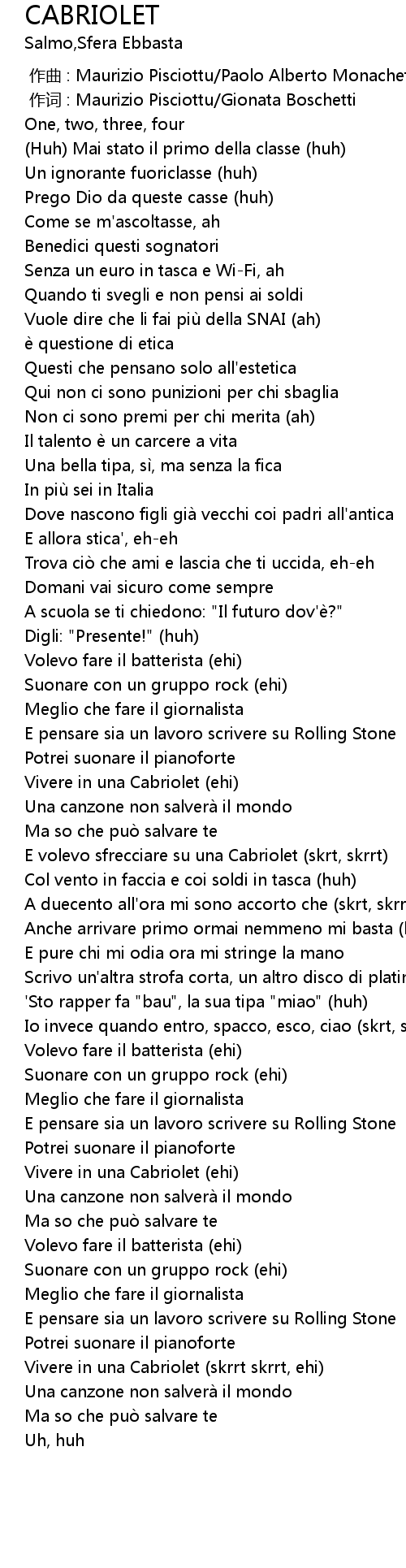 | [02:33.85] | Vivere in una Cabriolet (skrrt skrrt, ehi) |