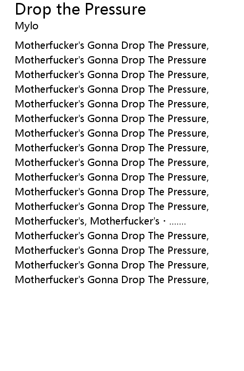 | Motherfucker's Gonna Drop The Pressure | |