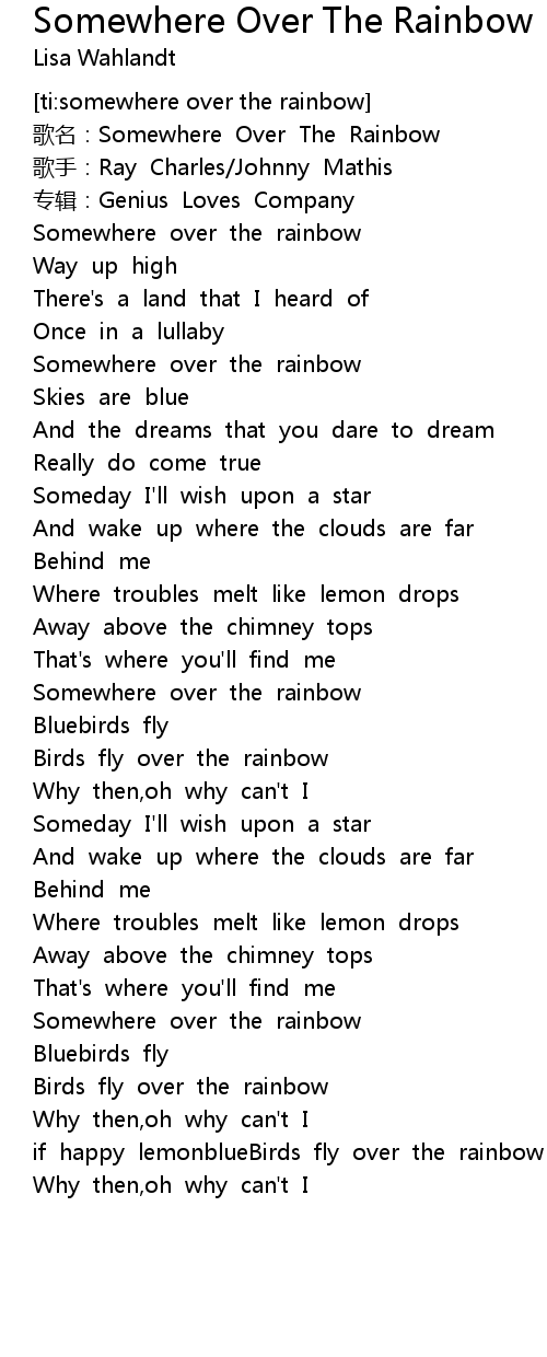| [00:04.302] | gē míng: Somewhere Over The Rainbow |