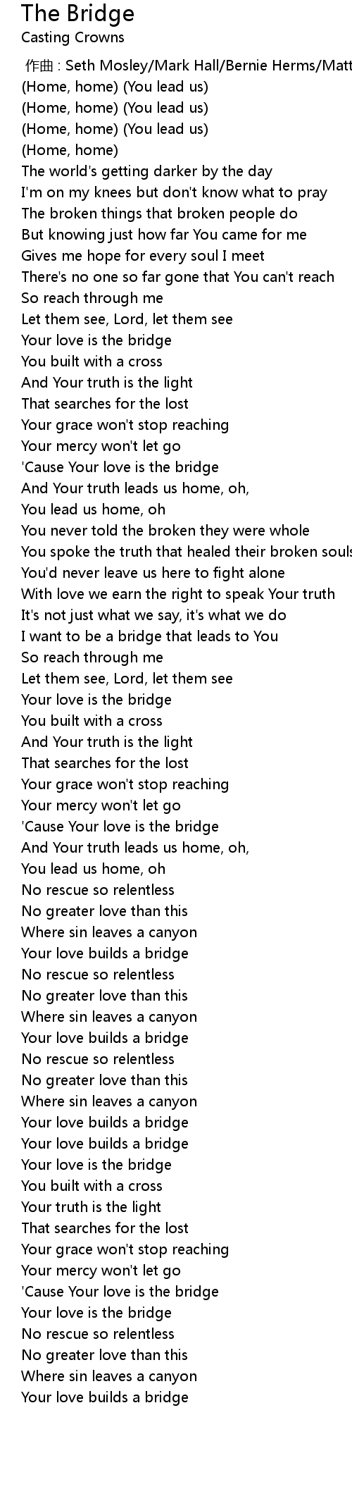 | [00:00.000] | 作曲 : Seth Mosley/Mark Hall/Bernie Herms/Matthew West |