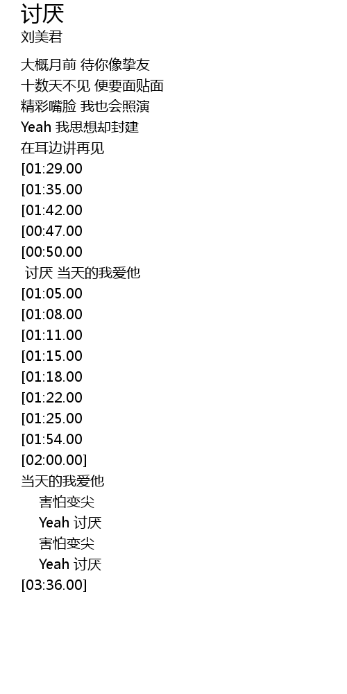 | [00:59.00] | 讨厌 当天的我爱他 |