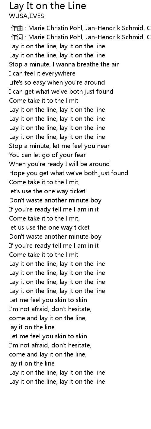 | [01:54.498] | Lay it on the line, lay it on the line |