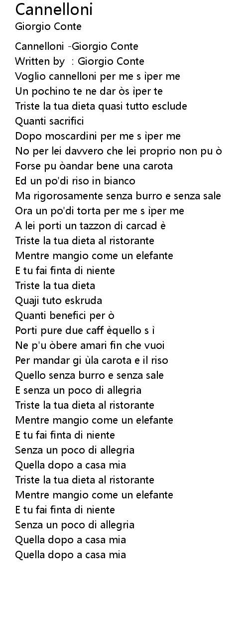 | [00:00.164] | Cannelloni -Giorgio Conte |