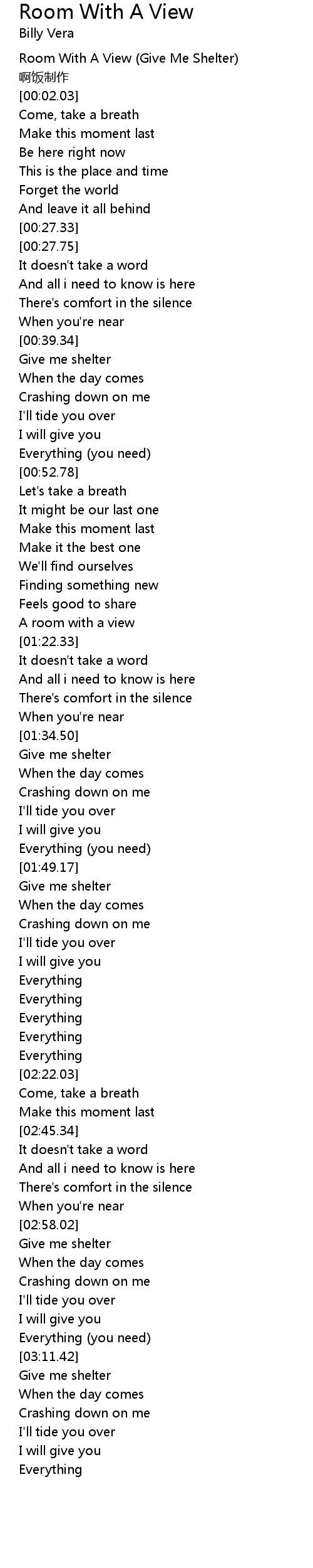 | [00:00.01] | Room With A View (Give Me Shelter) |