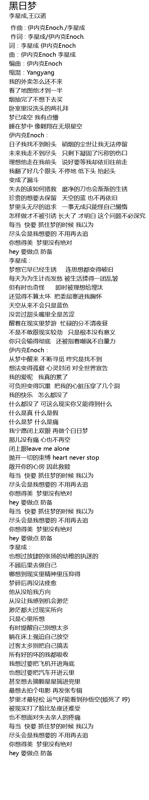 | [00:02.545] | cí: lǐ xīng chéng yī nèi kè Enoch |