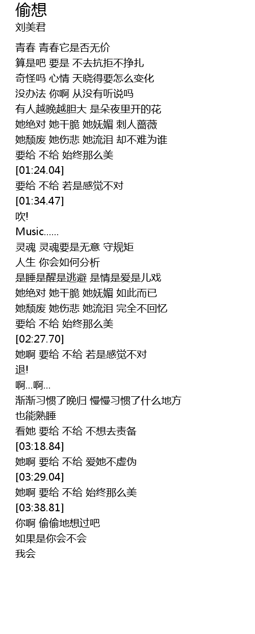 | [03:31.61] | 她啊 要给 不给 始终那么美 |