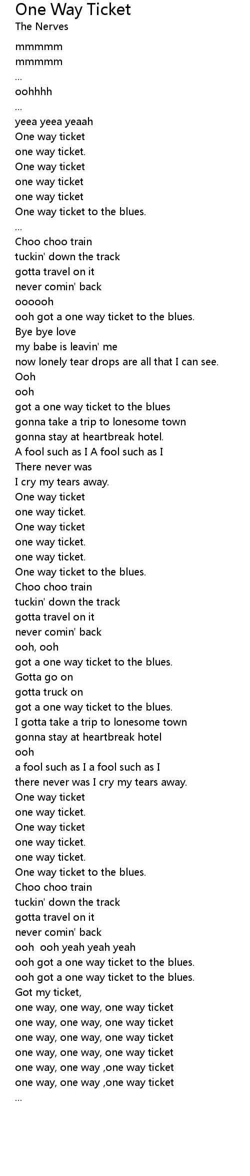 ooh got a one way ticket to the blues. |