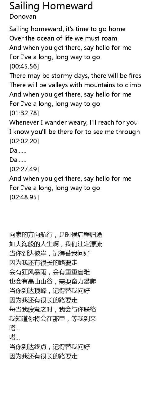 Sailing homeward, it's time to go home |