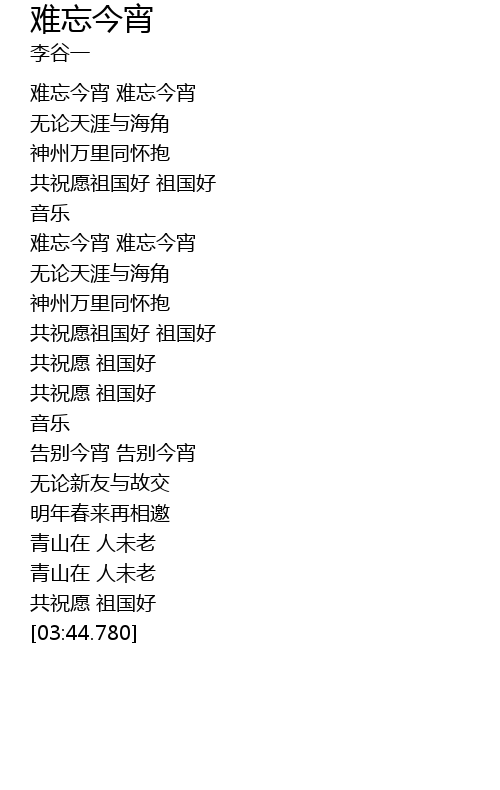 | [01:19.080] | 难忘今宵 难忘今宵 |