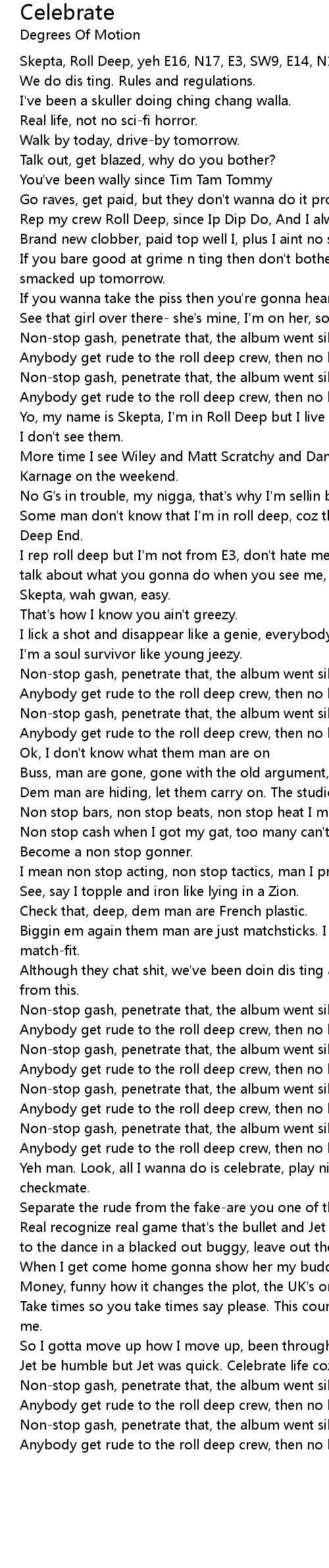 Non-stop gash, penetrate that, the album went silver, celebrate that. |