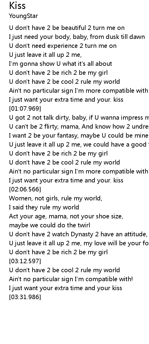 | [01:45.388] | U don' t have 2 be rich 2 be my girl |
