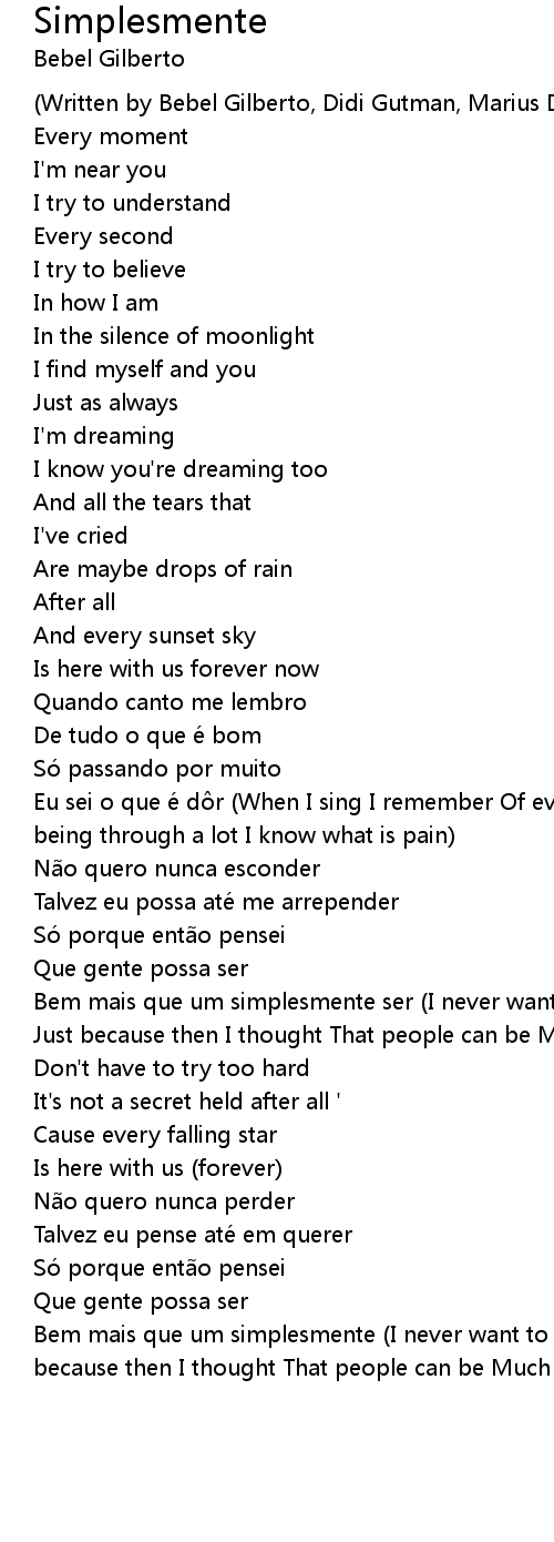 | Bem mais que um simplesmente (I never want to hide Maybe I can even regret Just because then I thought That people can be Much more that a simple being) |