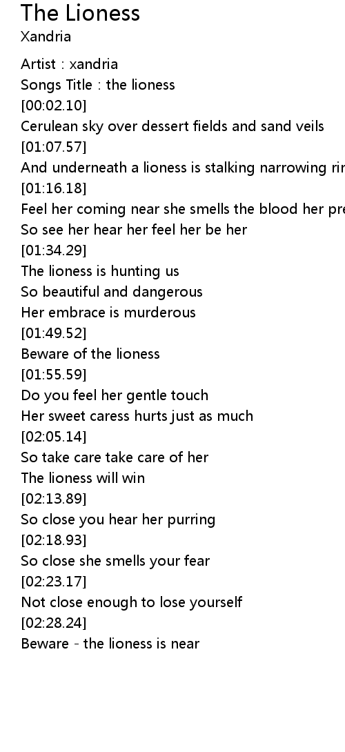 | [01:51.34] | Beware of the lioness |
