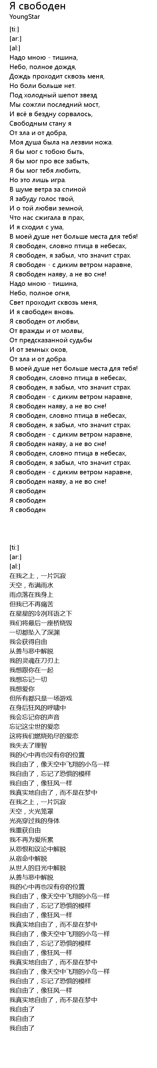 | [02:24.50] | Я свободен, я забыл, что значит стpах. |