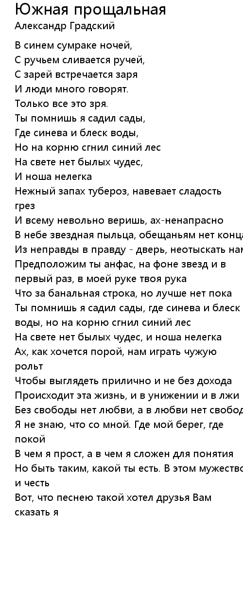 Южная прощальная 歌词