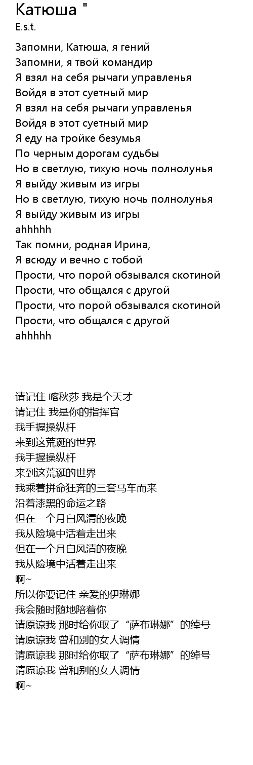 | [00:03.300] | 请记住 喀秋莎 我是个天才 |