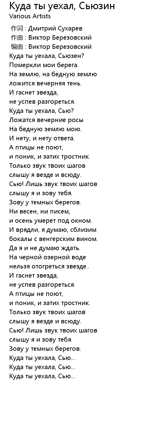 Куда ты уехал, Сьюзин 歌词