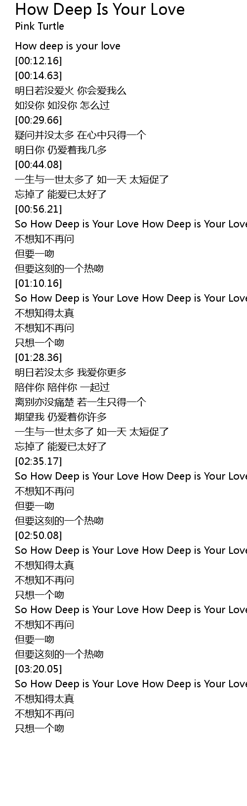 | [00:57.52] | So How Deep is Your Love How Deep is Your Love |