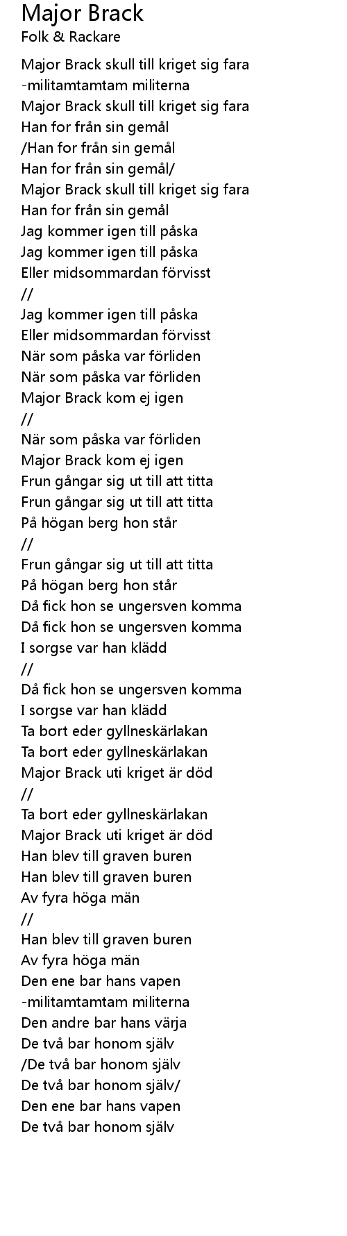 | Major Brack uti kriget r d d | |