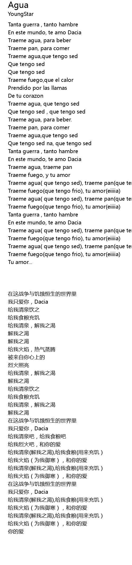 Traeme agua( que tengo sed), traeme pan(que tengo hambre) |