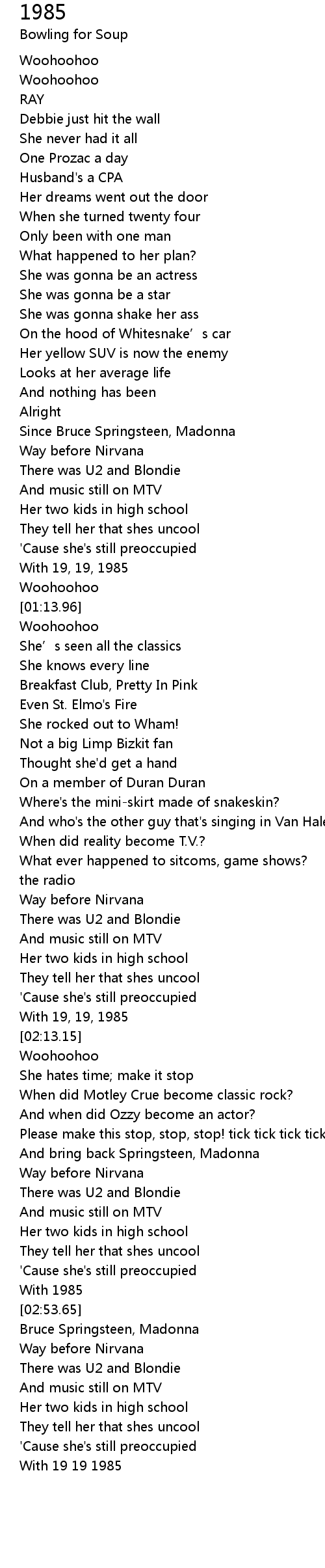 | [02:39.40] | And bring back Springsteen, Madonna |