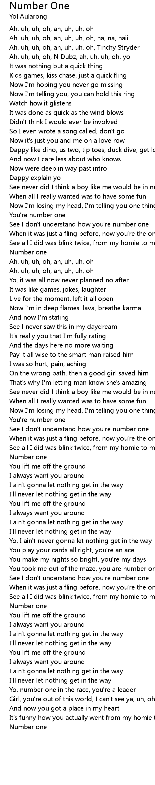 Ah, uh, uh, oh, ah, uh, uh, oh, Tinchy Stryder |