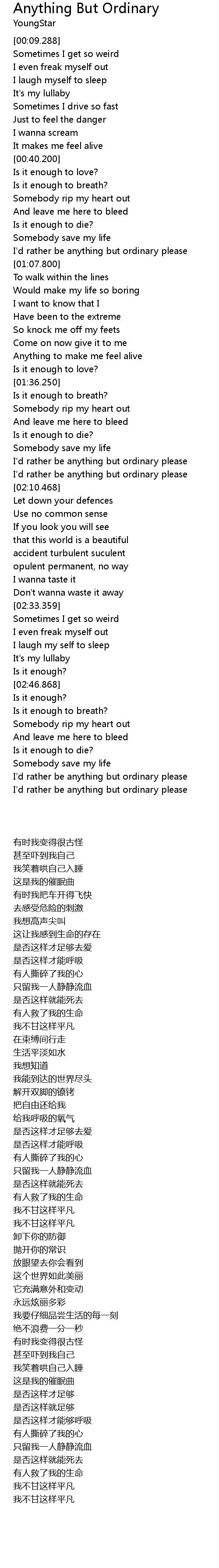 I'd rather be anything but ordinary please |