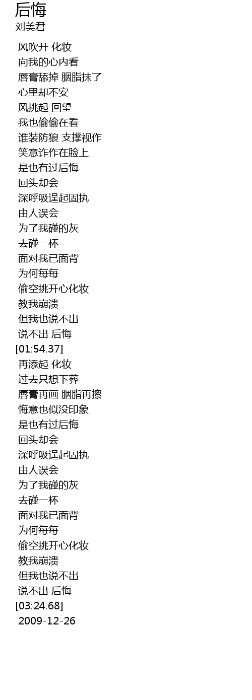 | [03:15.54] | shuo bu chu hou hui |