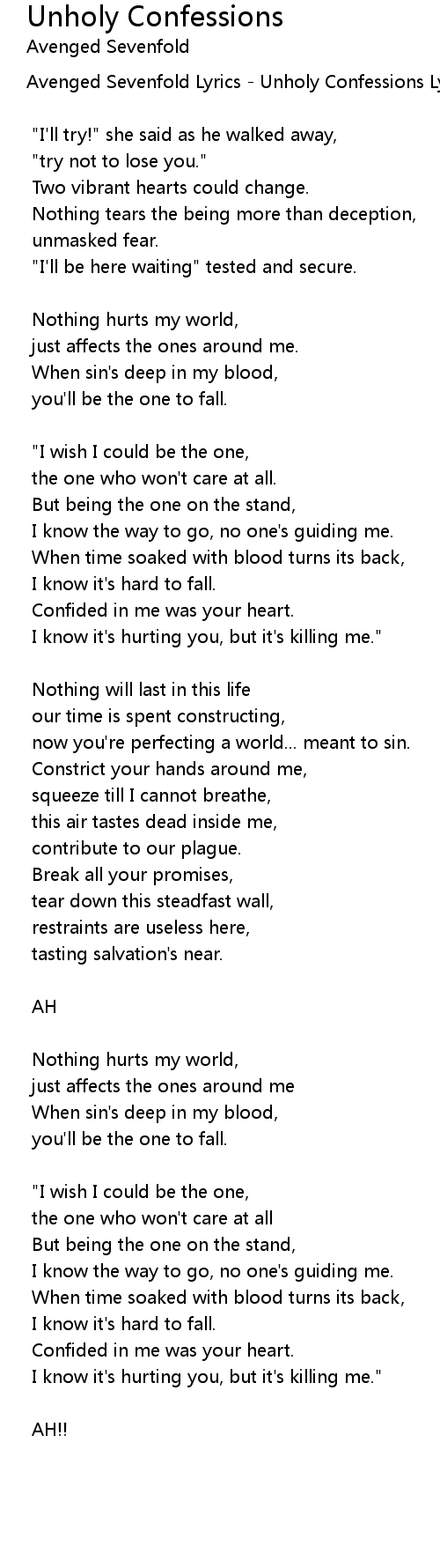 Avenged Sevenfold Lyrics - Unholy Confessions Lyrics |