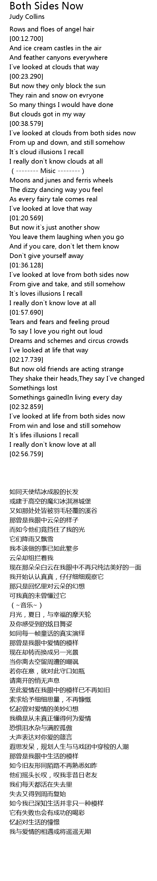 | [00:39.790] | I ve looked at clouds from both sides now |