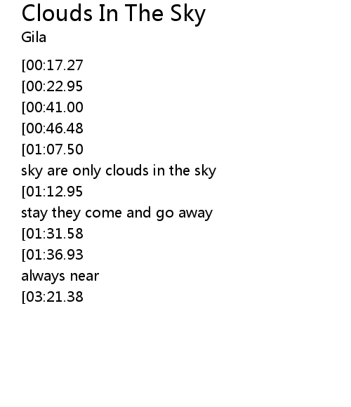 | [00:56.18][01:07.50][01:46.25][01:58.13][02:37.35][02:48.93] | The clouds in the sky are only clouds in the sky |